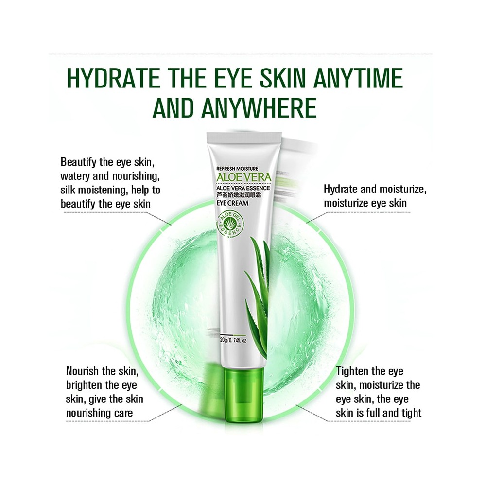 Aloe Eye cream.Hydrating & Moisturizing.Hydrolyzed pearl .Aloe Moisturizing Serum Fresh and skin soothing.Providing firm and vibrant appearance.Skin Nourishment and protection.Sodium hyaluronate.